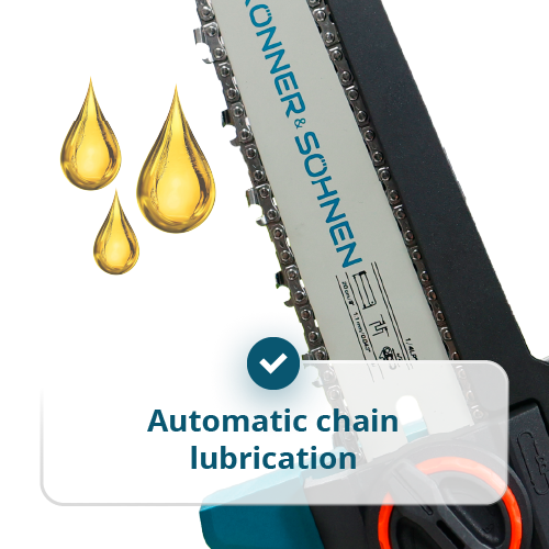 - Automatic chain lubrication – provides continuous lubrication during operation, reducing wear and extending the lifespan of the cutting equipment (chain and guide bar).