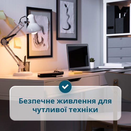 • Інверторна технологія – забезпечує стабільну вихідну напругу правильної синусоїдальної форми, що підходить для надійної роботи чутливої електроніки.